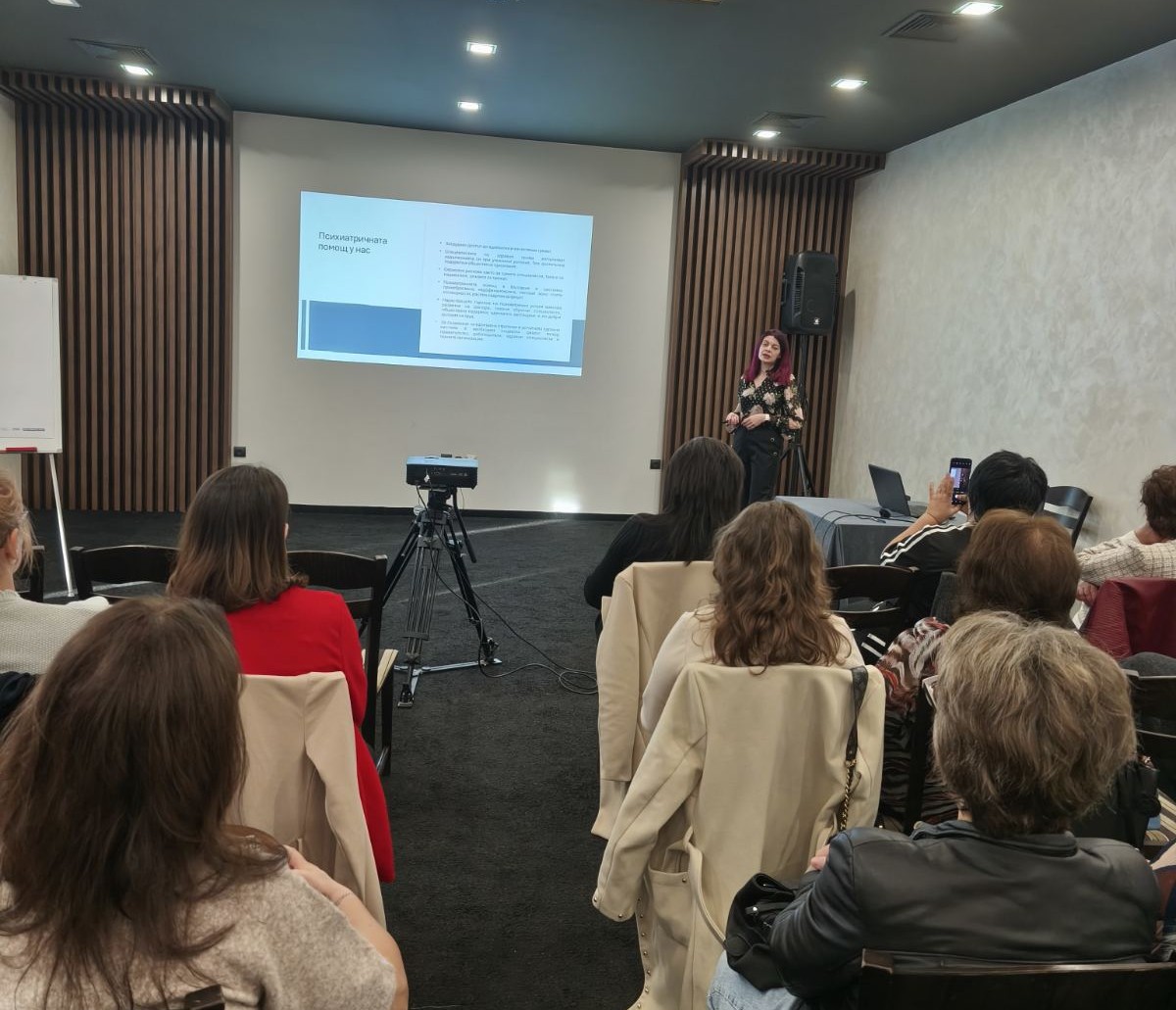 Сред останалите лектори участие взе и ас. Мирослава Илиева от катедра „Здравни грижи", Русенски университет „Ангел Кънчев" с презентация на тема „Двойна диагноза:  злоупотреба с вещества и психично здраве"