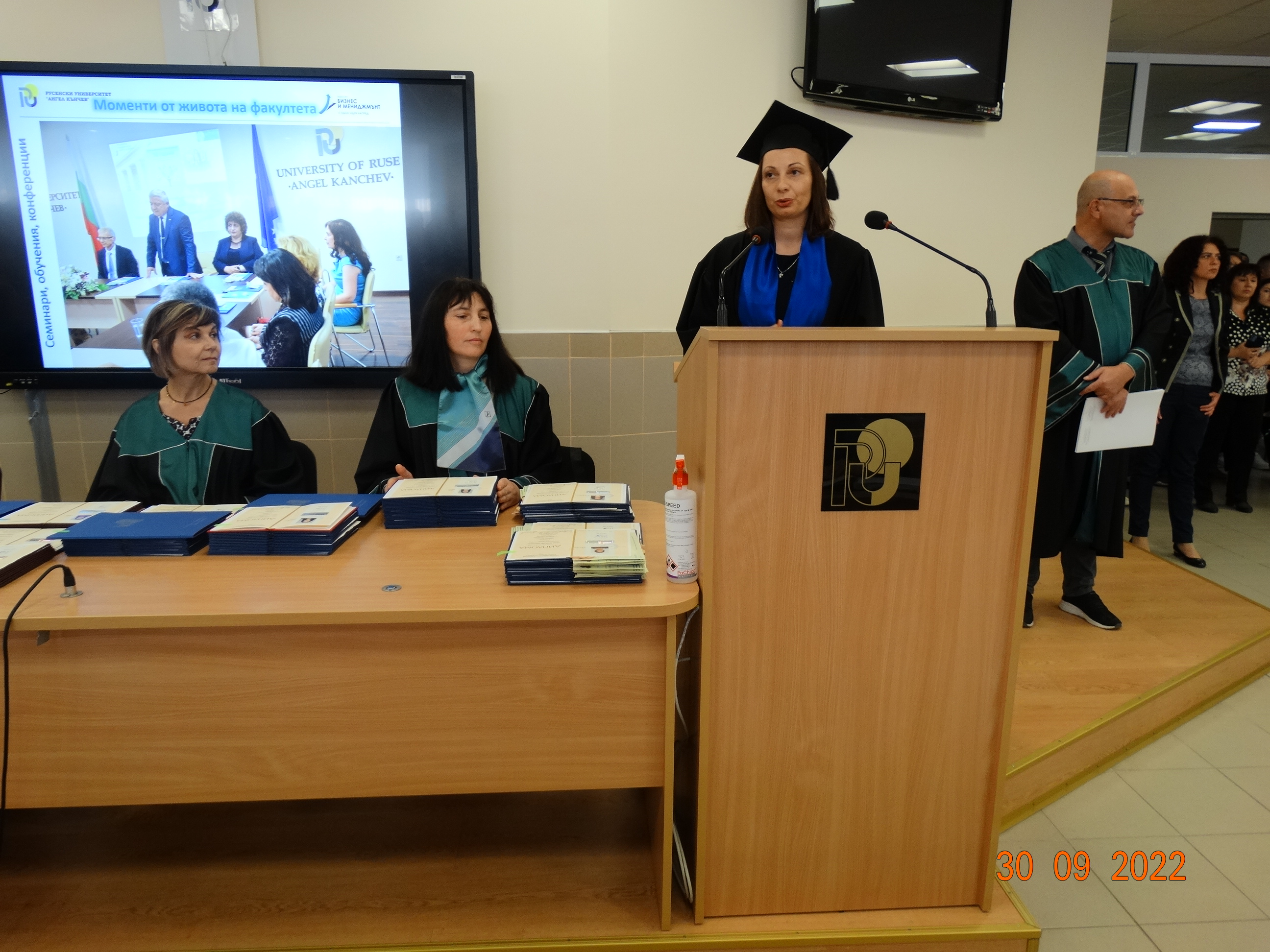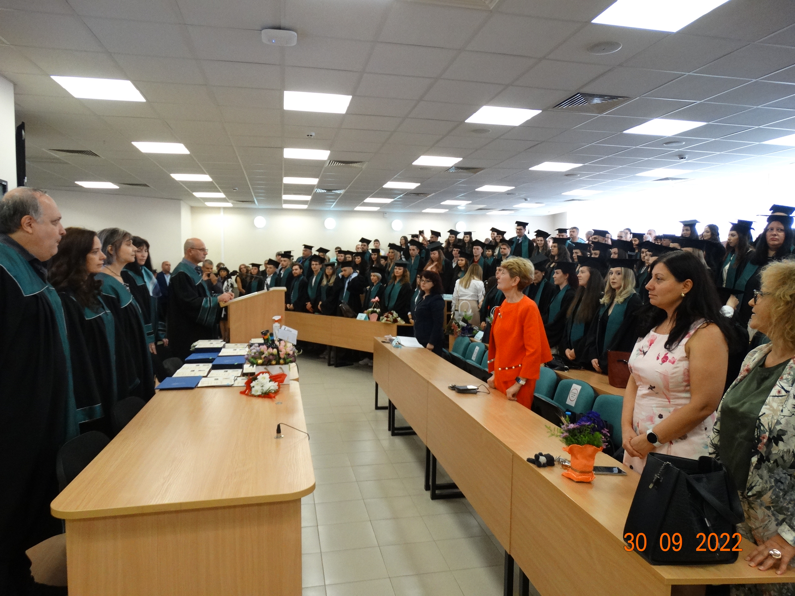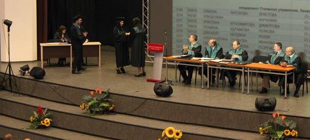 ВАЖНО! Преди тържественото връчване дипломантите трябва да посетят факултетната канцелария 1.340 (от 08:00 до 12:00 ч. или от 13:00 до 13:30 ч.), за да се попдпишат в официалния регистър.